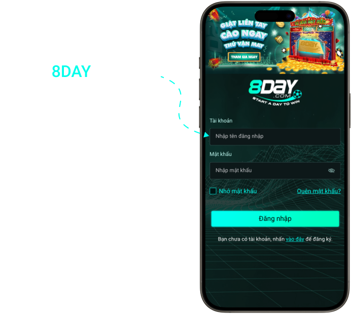 Đăng nhập tài khoản vào 8Day